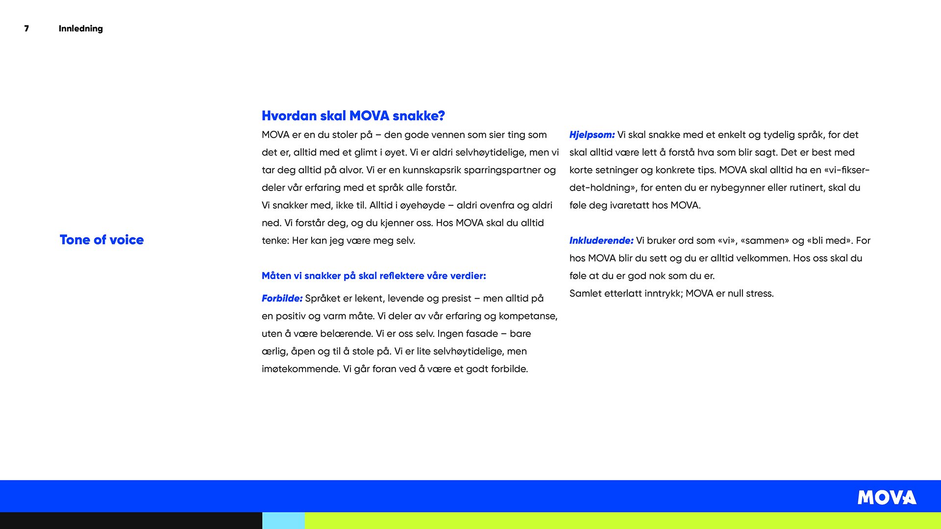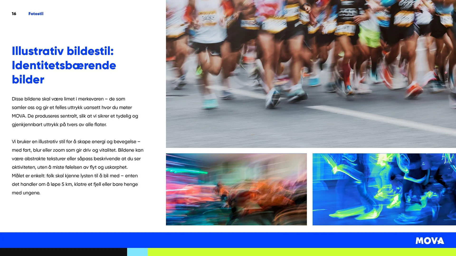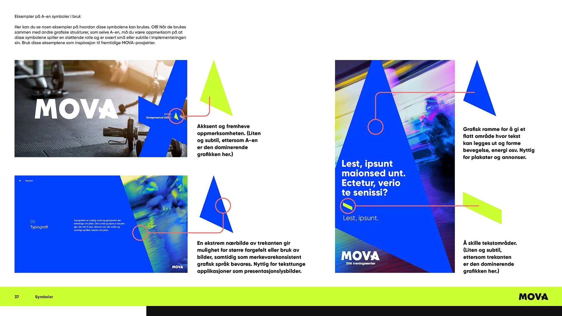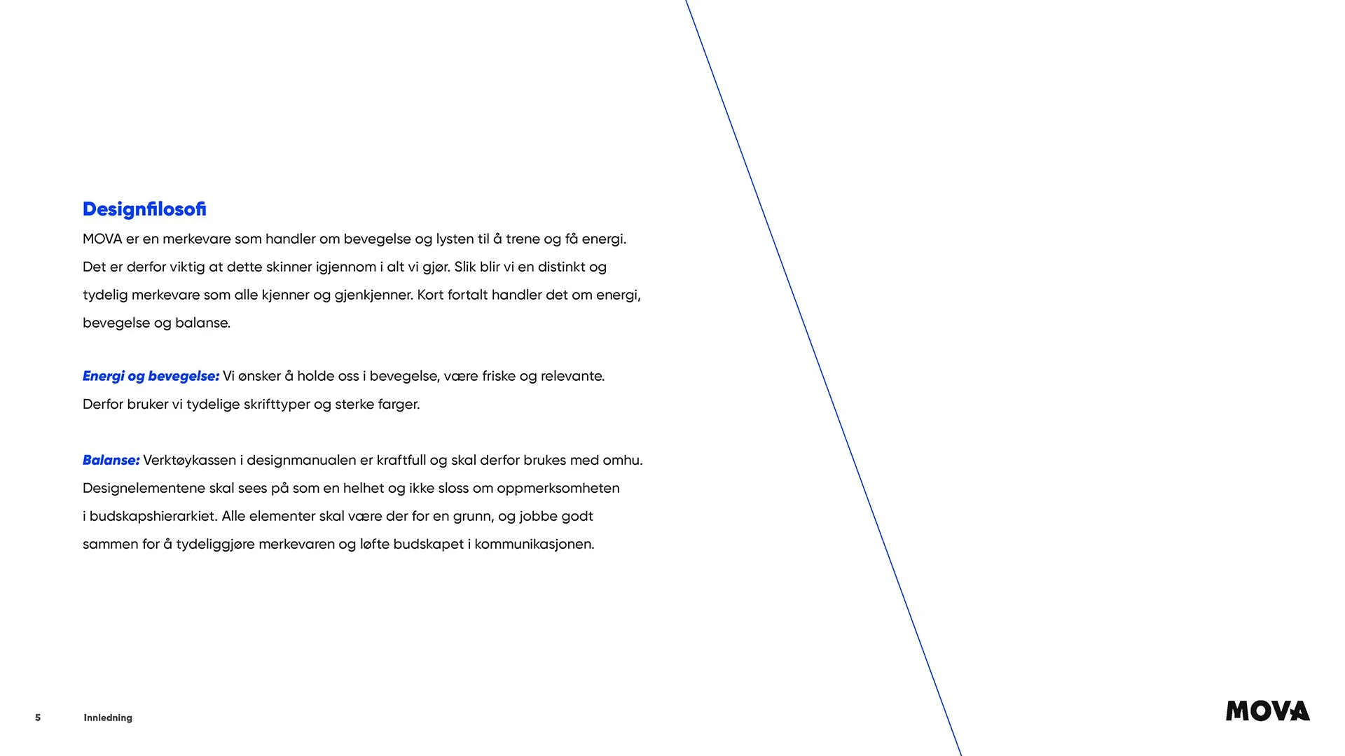 MOVA er en kjede med over 100 separate, uavhengig eide treningssentre som har slått seg sammen for å skape et av Norges største nettverk av treningssentre. For å forene en så mangfoldig gruppe av lokasjoner og mennesker, var det behov for en ny merkevareguide.